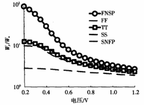 圖1室溫下寬度比隨電壓和工藝角的變化趨勢(shì)